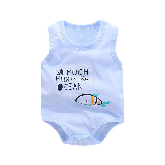 Brand Name: OrangeMomMaterial: COTTONStyle: FashionPattern Type: CartoonDepartment Name: BabyCollar: O-NeckItem Type: BodysuitsGender: UnisexSleeve Length(cm): SleevelessFit: Fits true to size, take your normal size